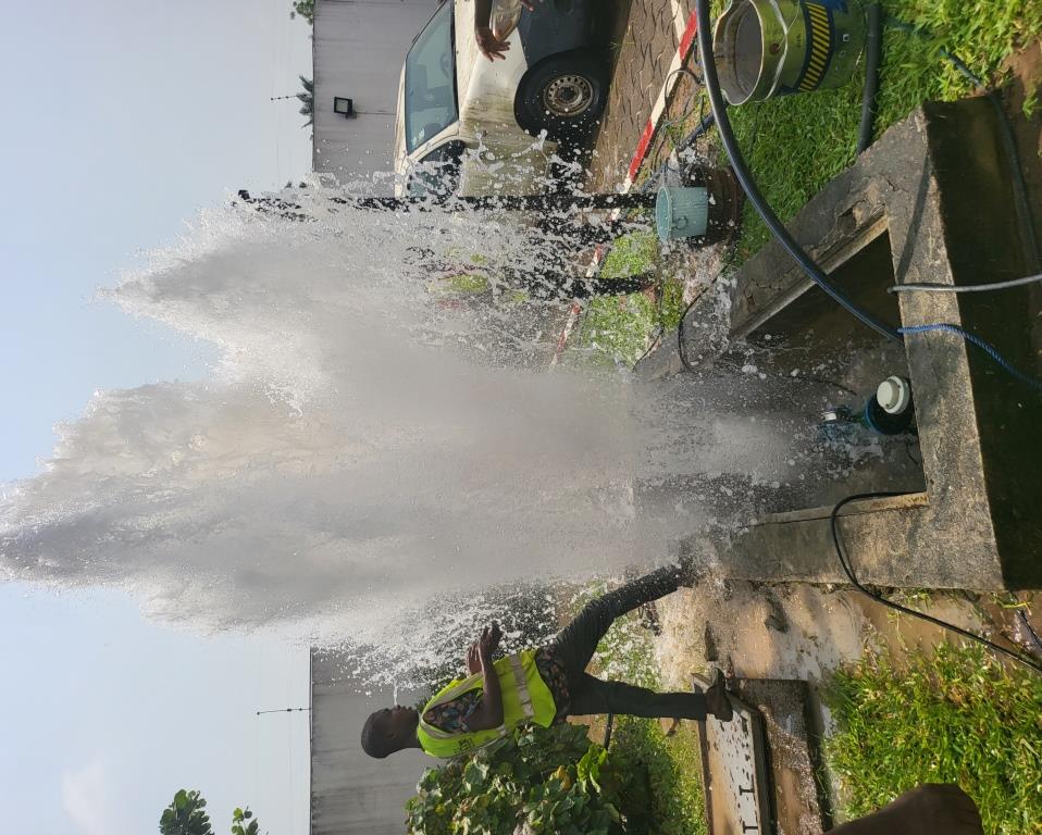 Nettoyage de forage a l'Hopital des Impots